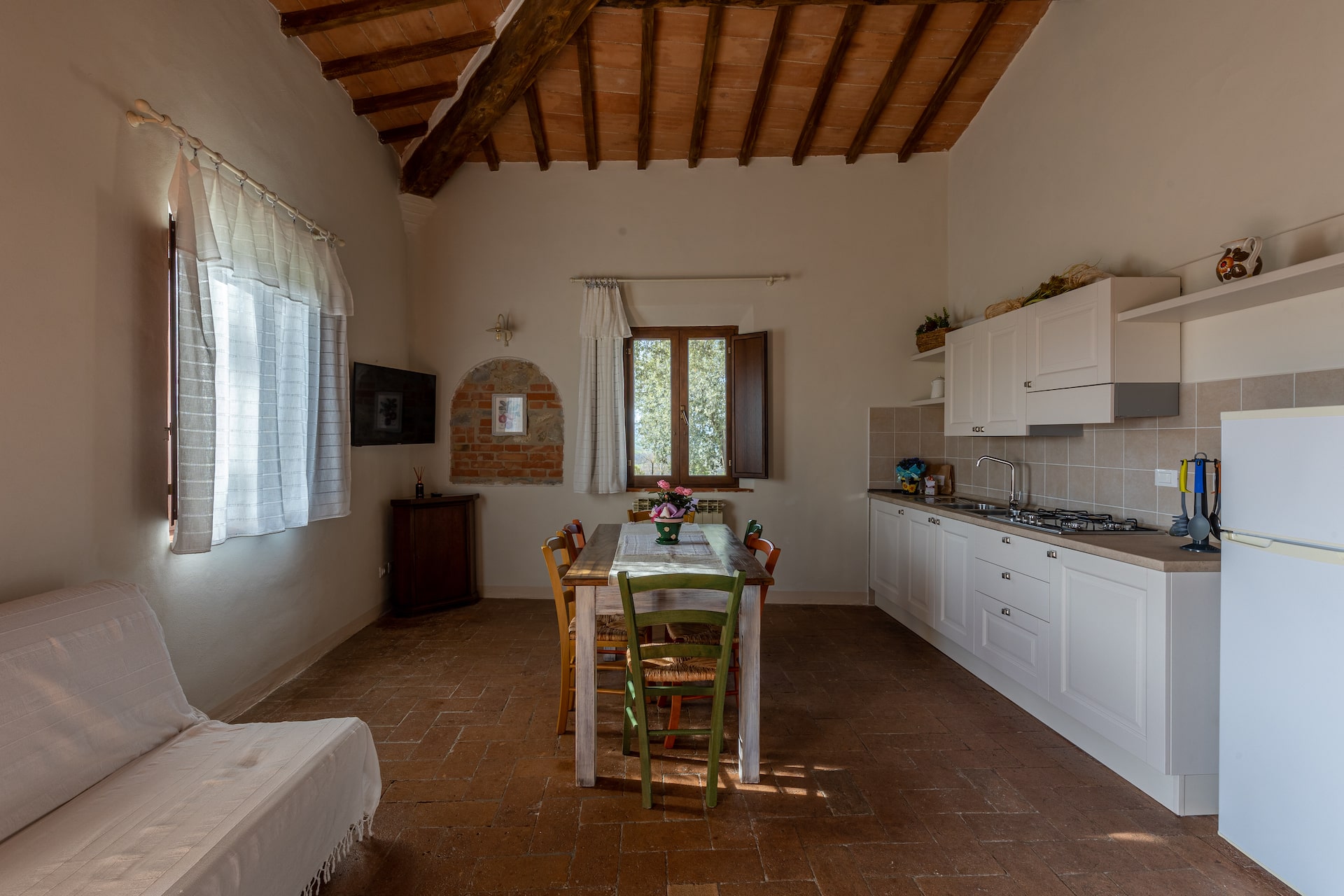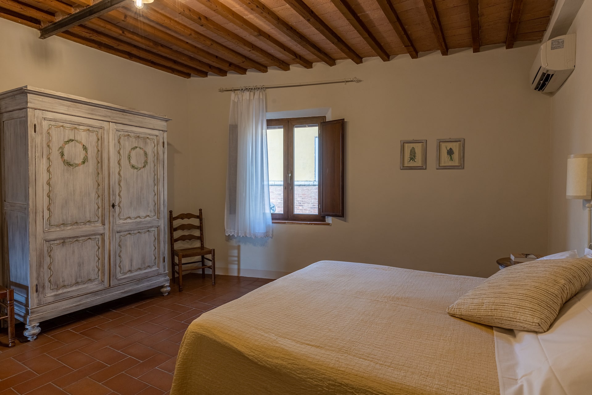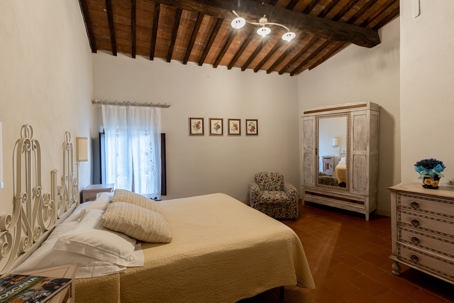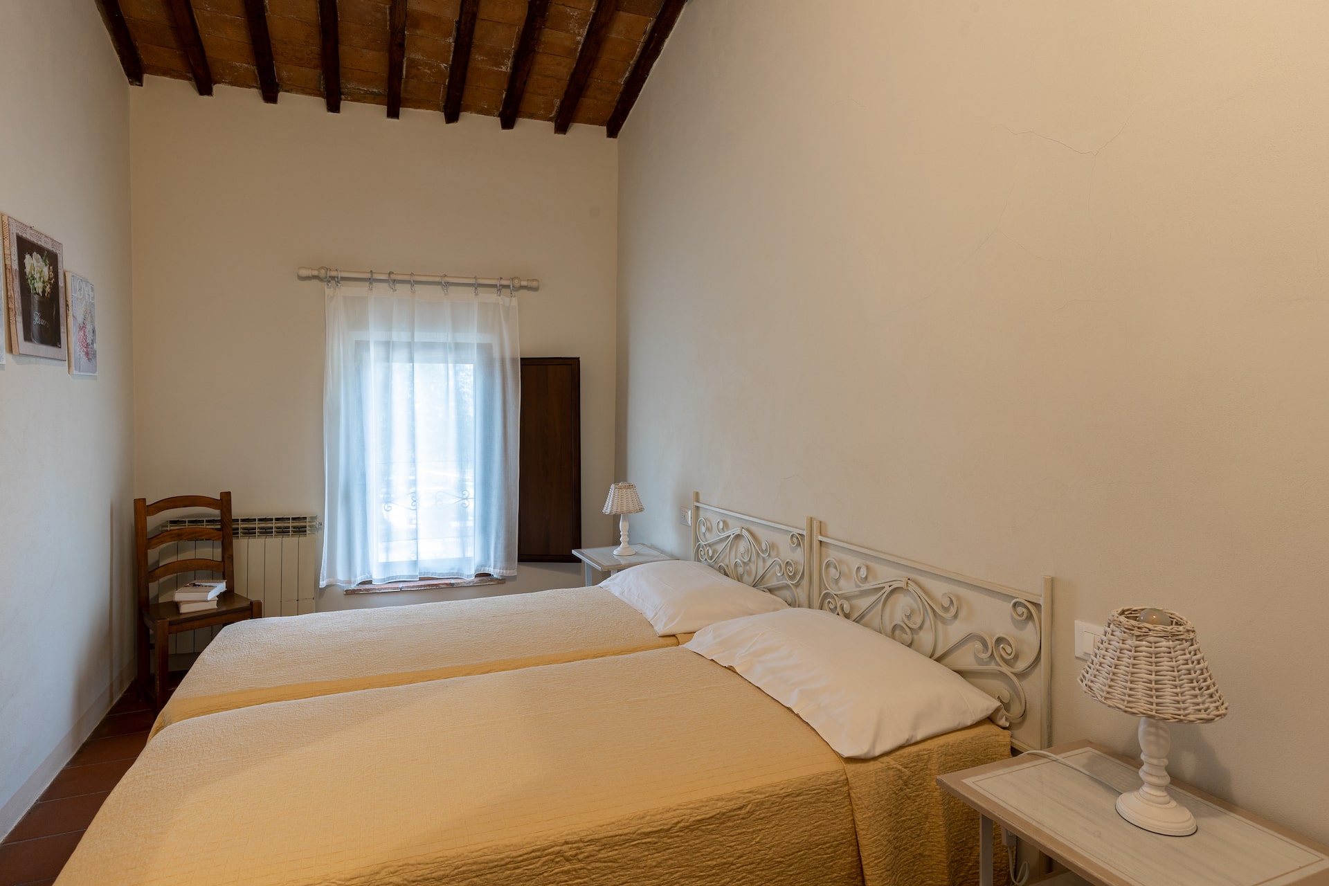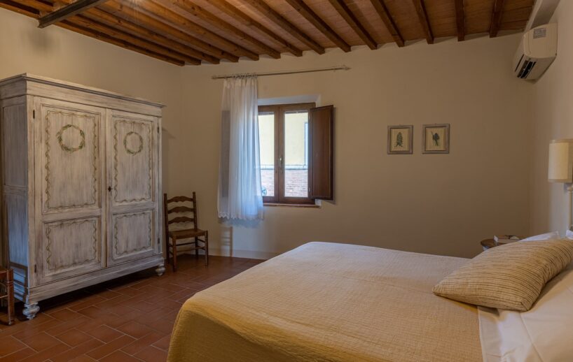 Le nostre camere sono accoglienti e confortevoli in stile tipico toscano con pavimento in cotto e travi a soffitto.