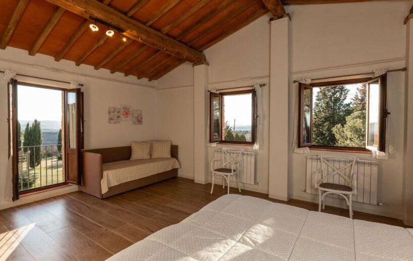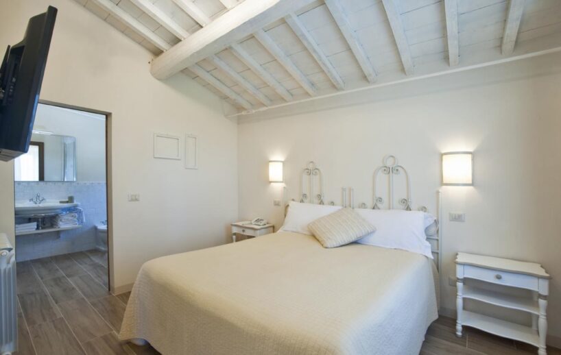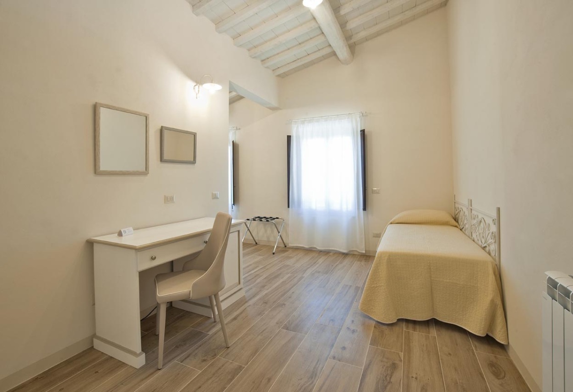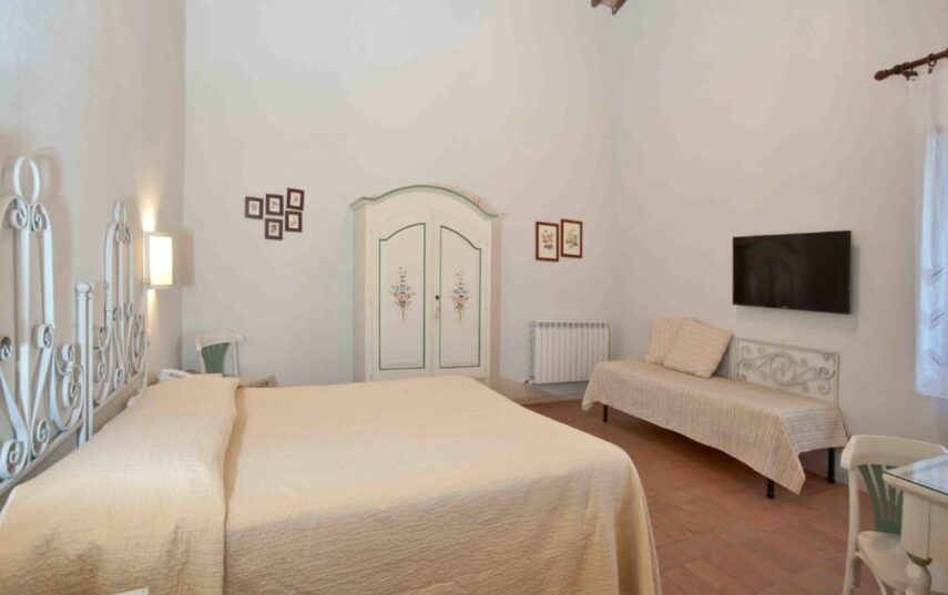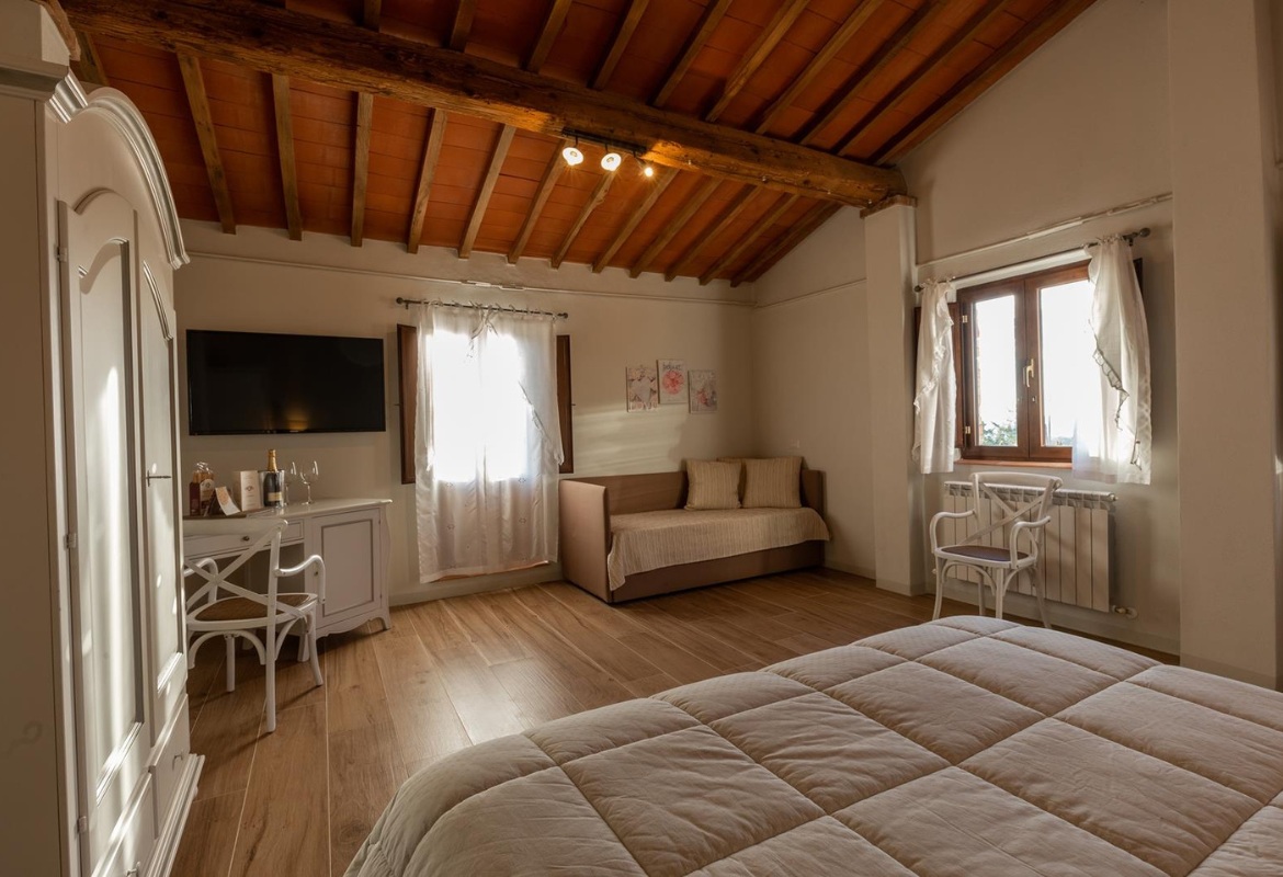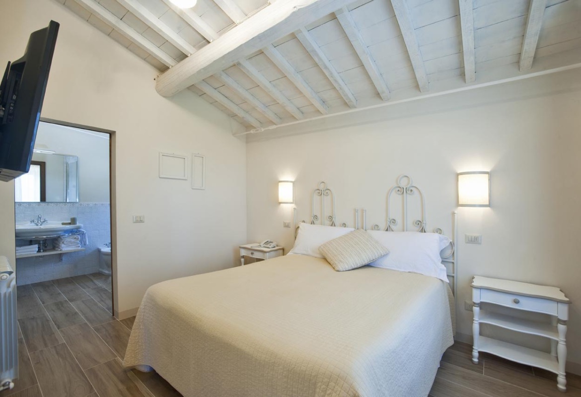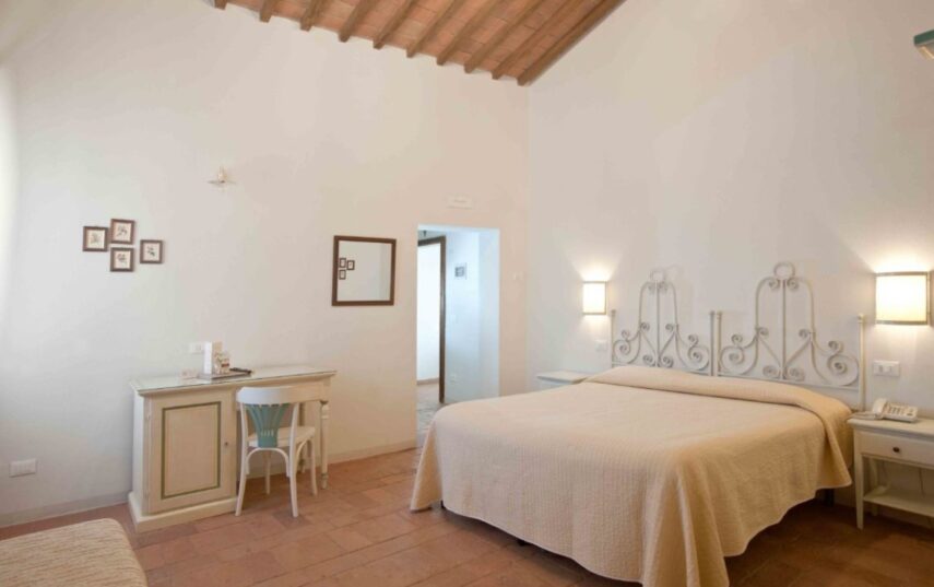 Le camere sono accoglienti e confortevoli arredate in stile tipico Toscano, con letti in ferro battuto, pavimento in cotto e travi al soffitto.