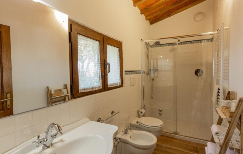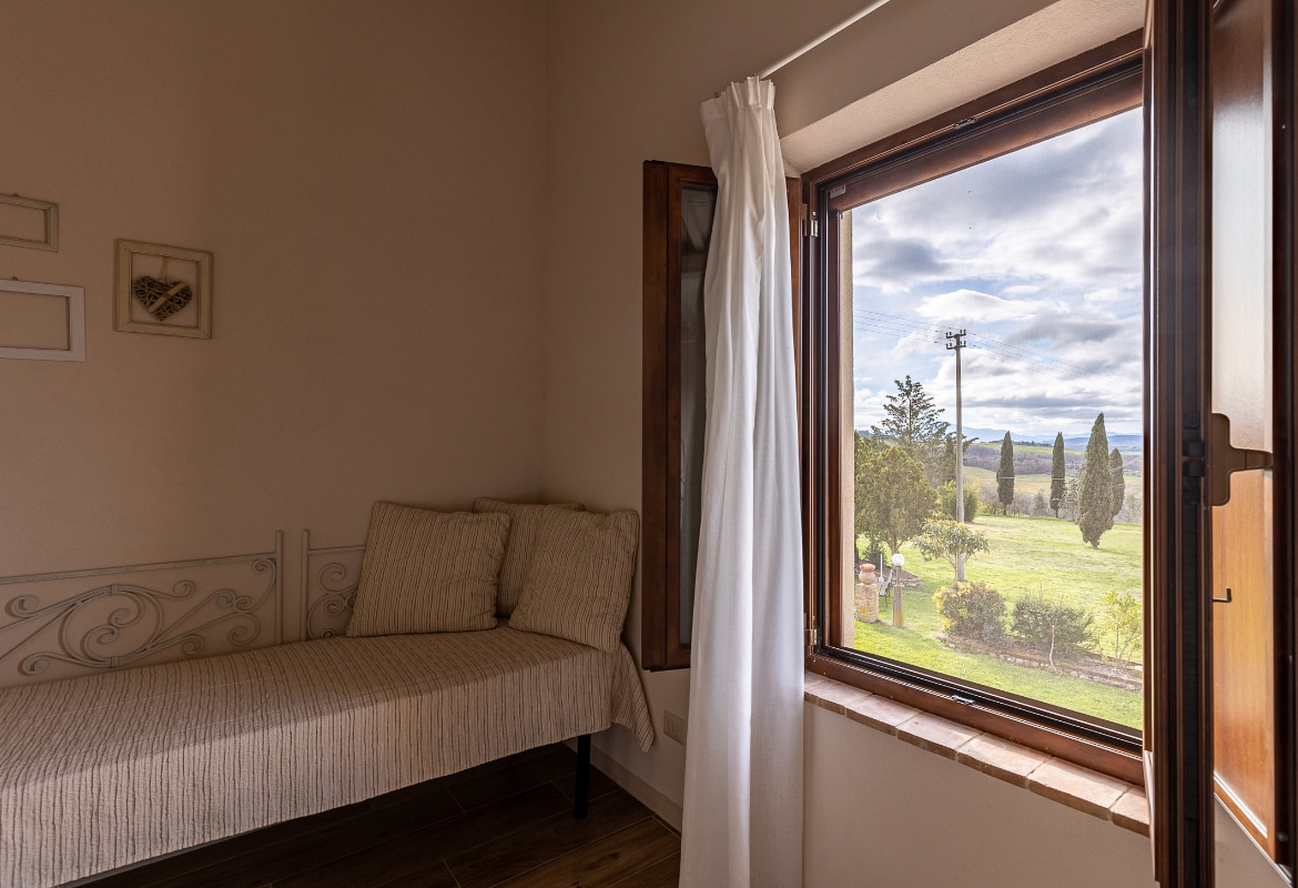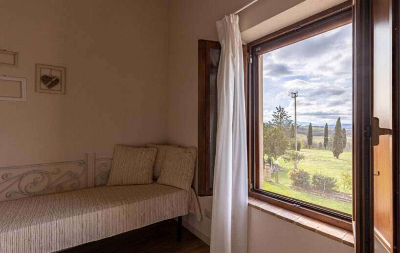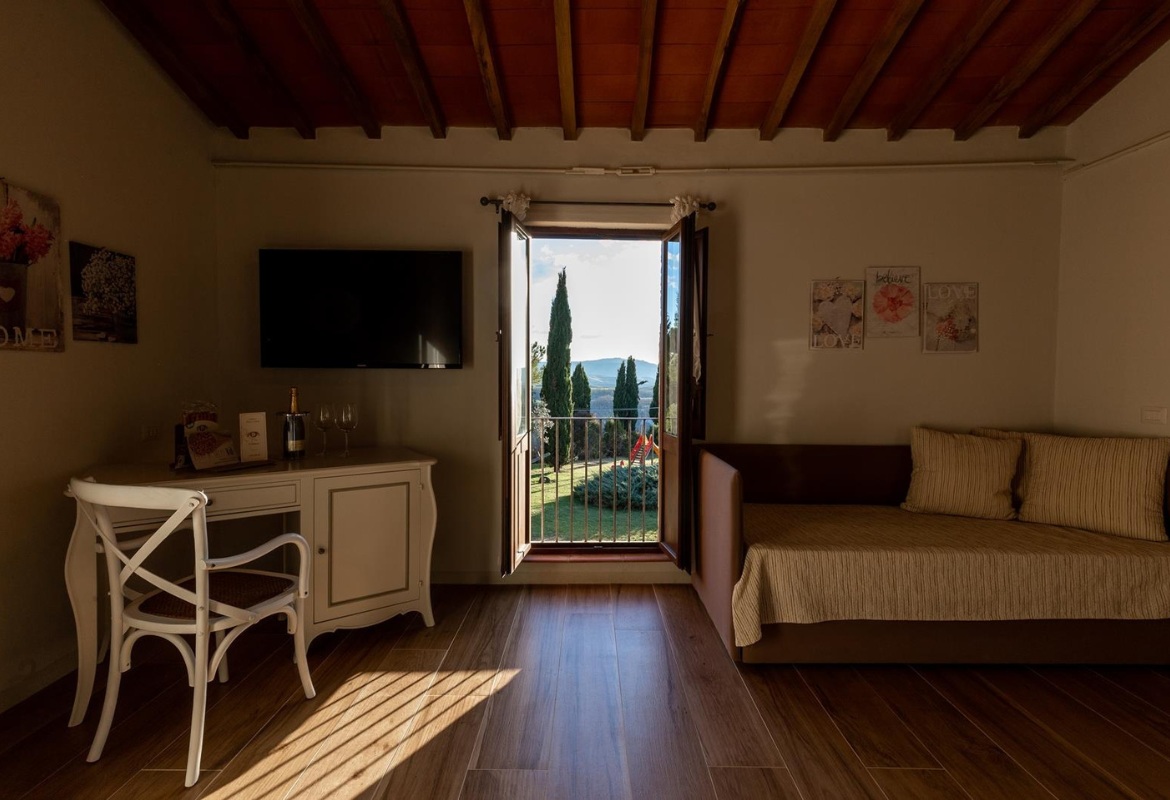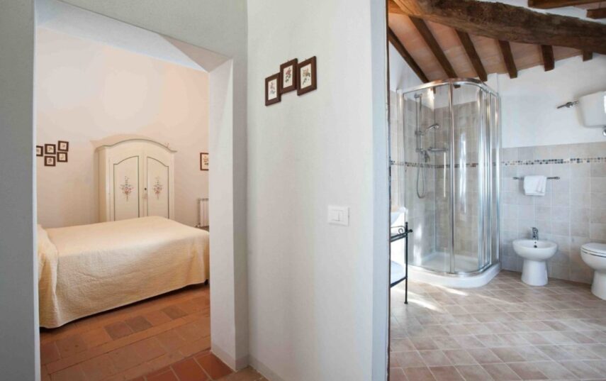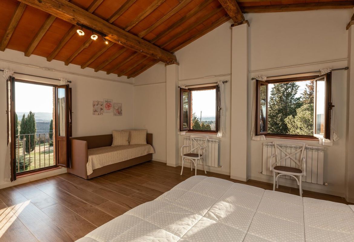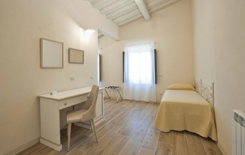 Le camere sono accoglienti e confortevoli arredate in stile tipico Toscano, con letti in ferro battuto, pavimento in cotto e travi al soffitto.