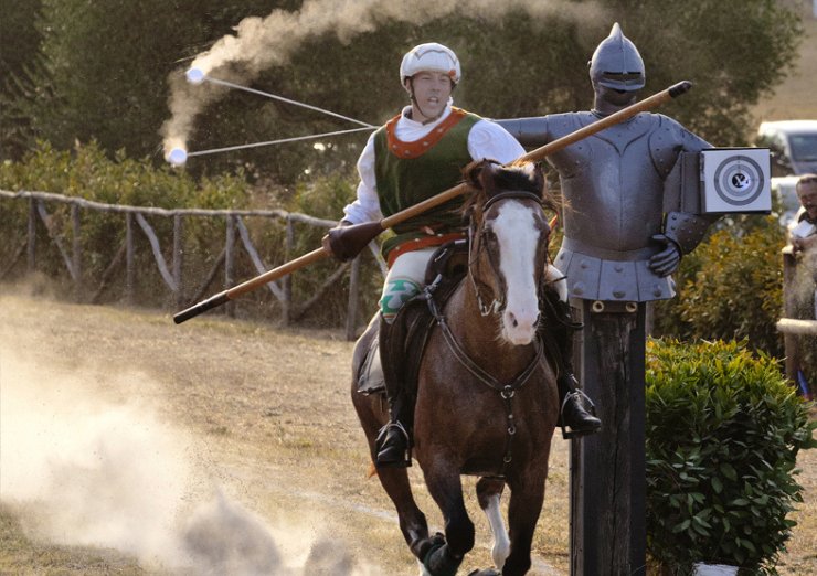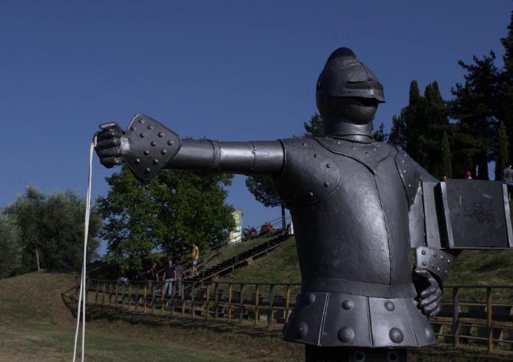 Qui, i cavalieri che rappresentano le contrade – San Martino, Castello, Piazza e Torre – gareggiano a cavallo, armati di lancia, cercando di ottenere il massimo dei punti colpendo un bersaglio raffigurante l’effigie di Simone, durante una corsa a pieno galoppo.